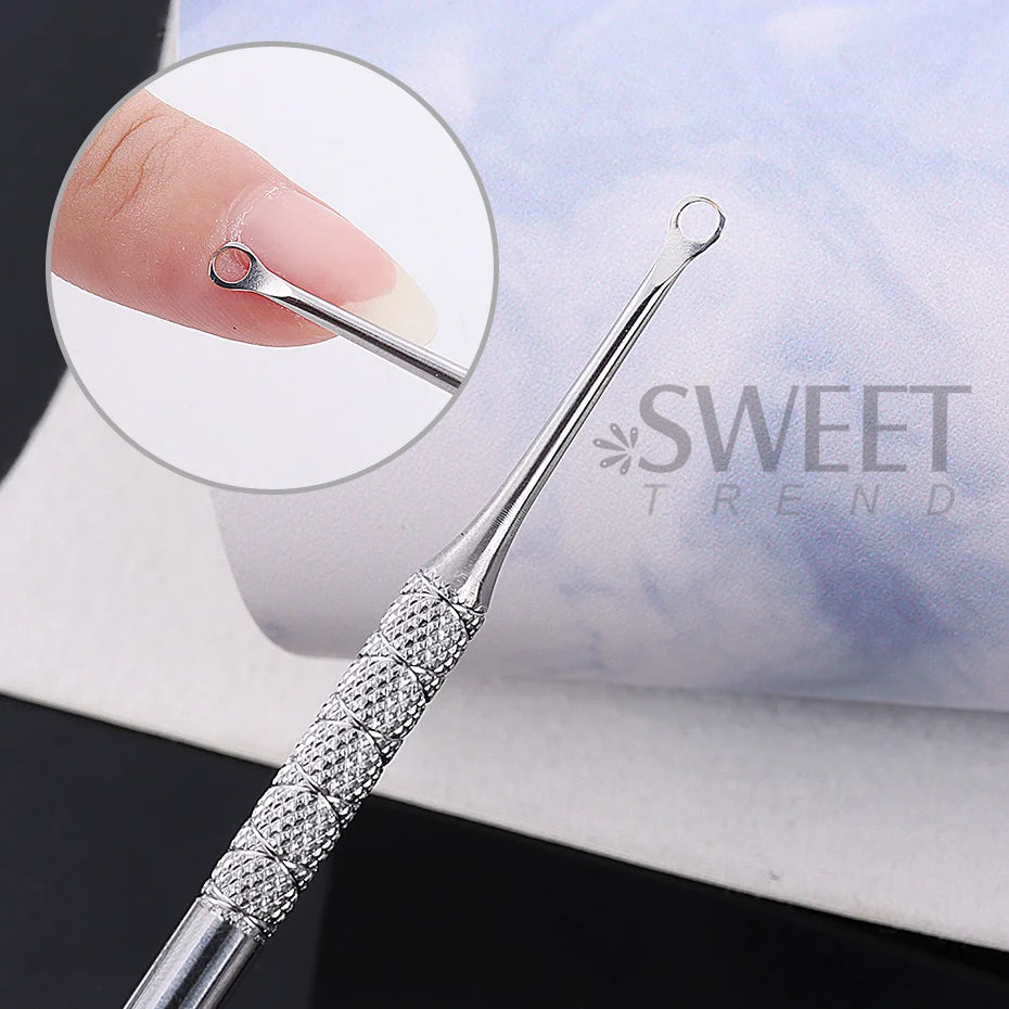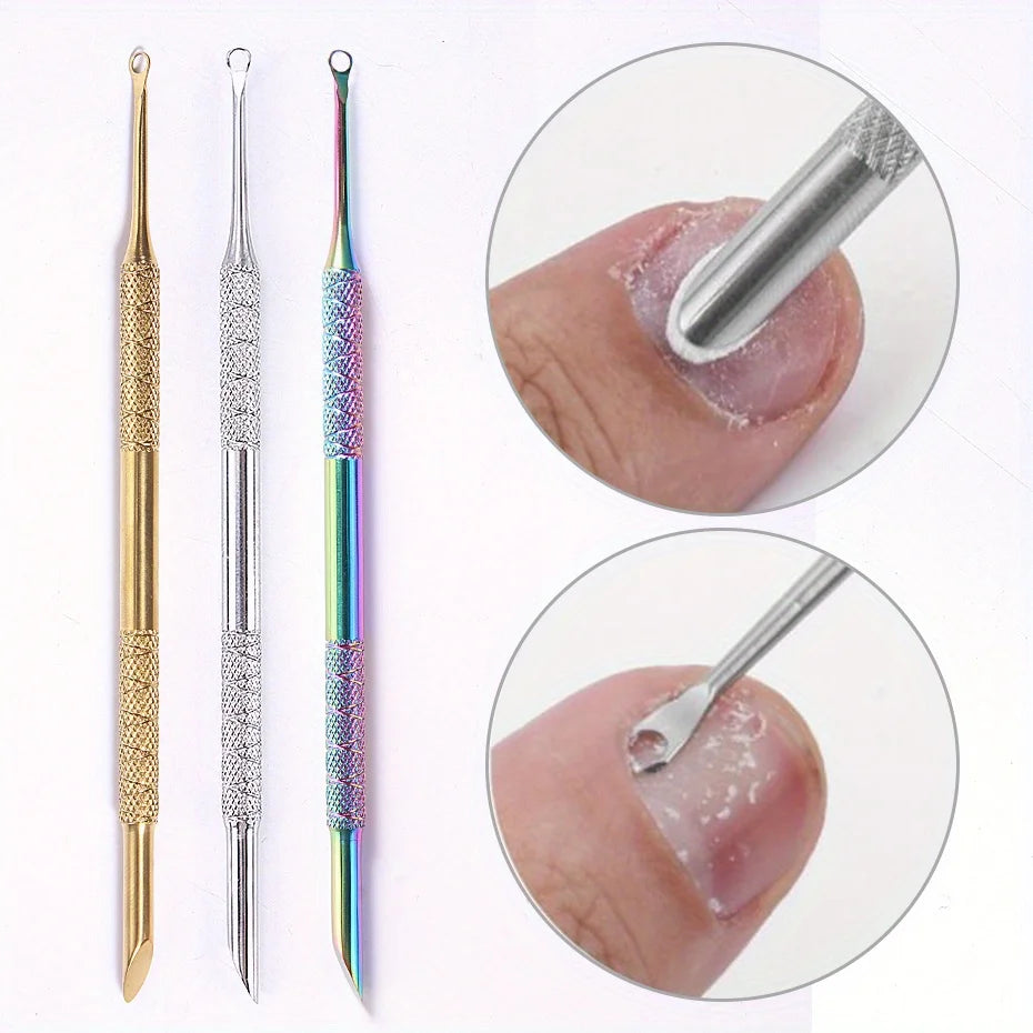 - Double-ended Use Nail Cuticle Pusher: The circle pusher head can be used to remove the cuticles around the nail, and the beveled pusher easily pushes up the stubborn dead skin and can be attached to sandpaper for polishing nails