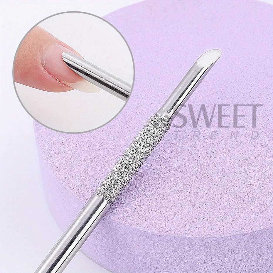 - Stainless Steel Pusher Manicure Tool: The double-ended nail cuticle pusher tool with rounded and beveled head is made of stainless steel and has a non-slip finish near the ends for an attractive and practical application.